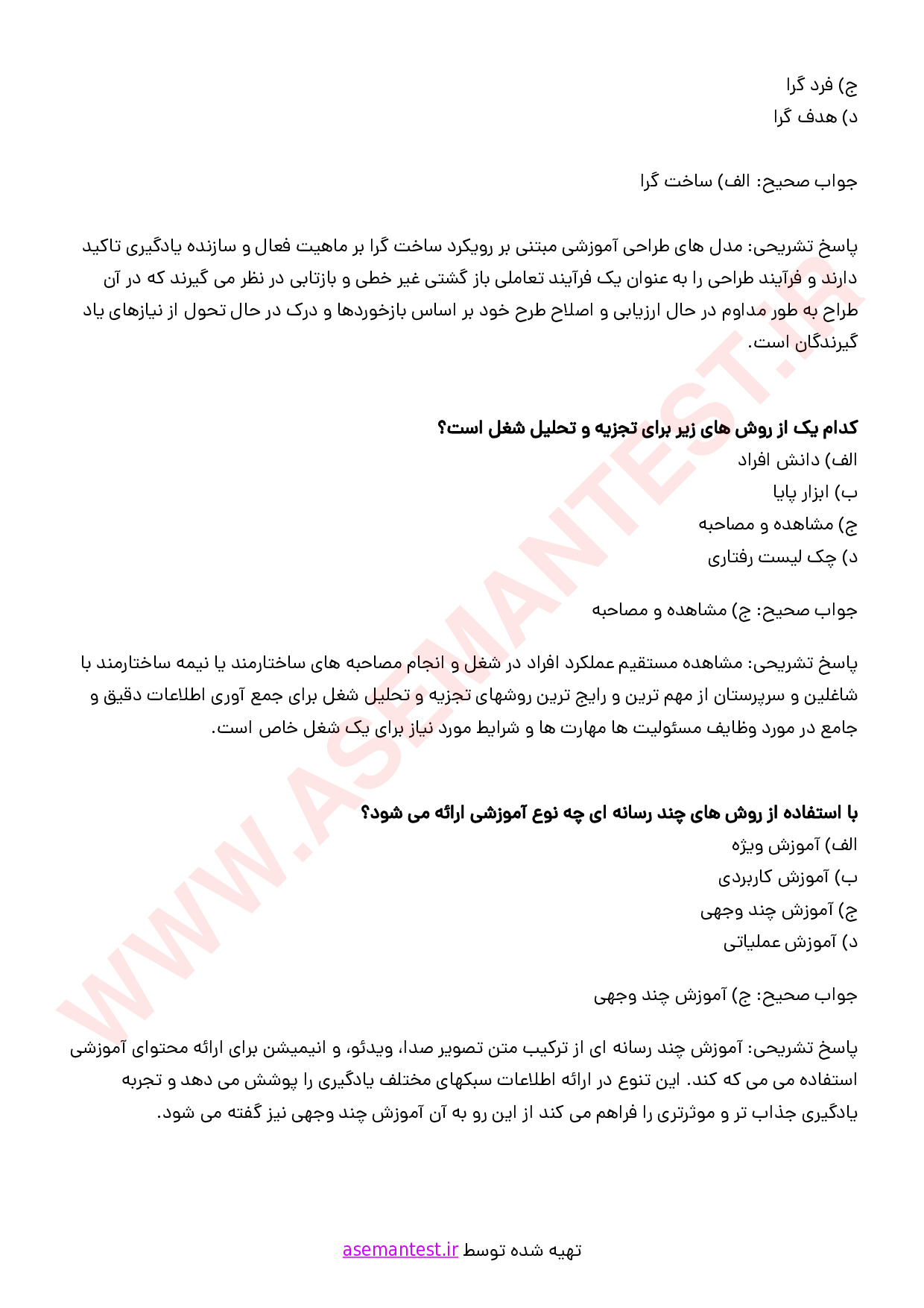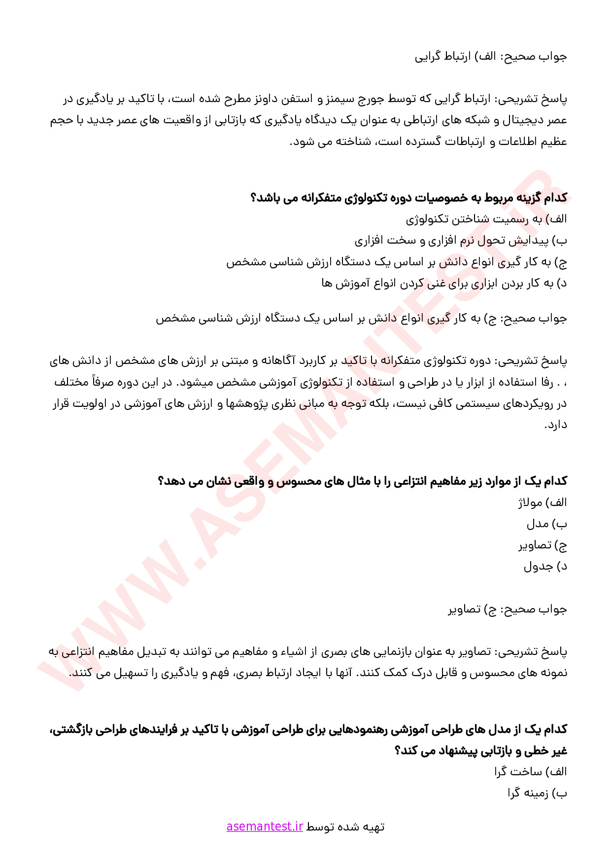 - فایل PDF نمونه سوالات آشنایی با فناوری های نوین آموزشی (تستی و تشریحی) به همراه پاسخنامه