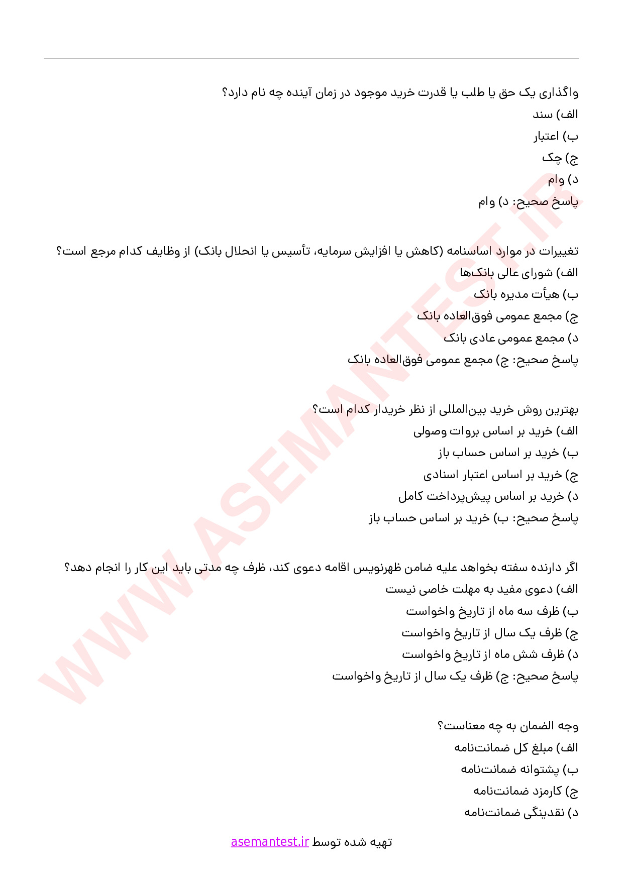 برای دانلود PDF نمونه سوالات آزمون استخدامی بانک سینا میتوانید روی دکمه دانلود کلیک کرده و سوالات را دریافت کنید. با مطالعه این سوالات، میتوانید با اطمینان بیشتری در آزمون استخدامی این بانک شرکت کنید. تمامی سوالات مورد نیاز شما در یکجا جمعآوری شدهاند تا نیازی به جستجوی بیشتر نداشته باشید. همچنین داشتن پاسخنامه جامع به شما کمک میکند تا مفاهیم را بهتر درک کنید و به سوالات مشابه در آزمون به درستی پاسخ دهید.