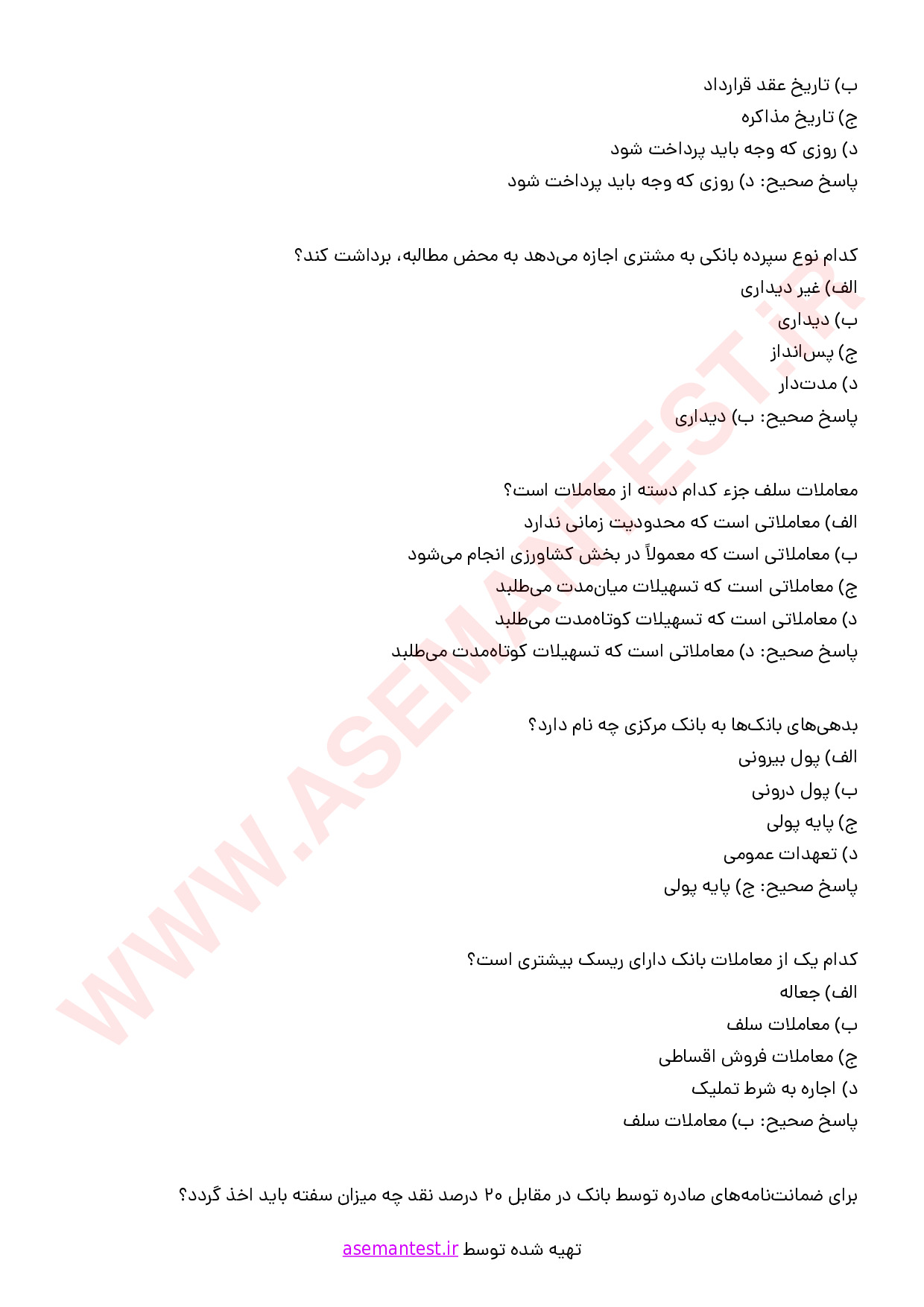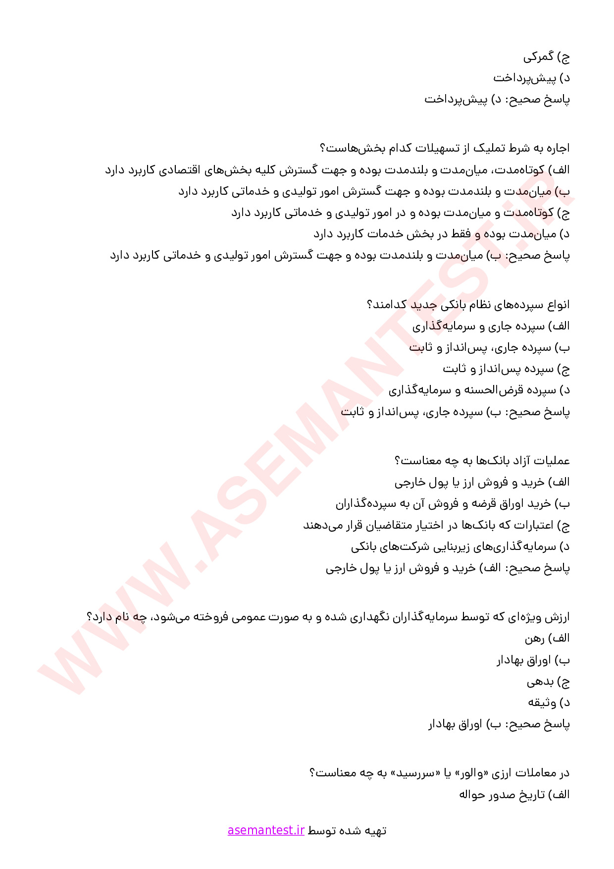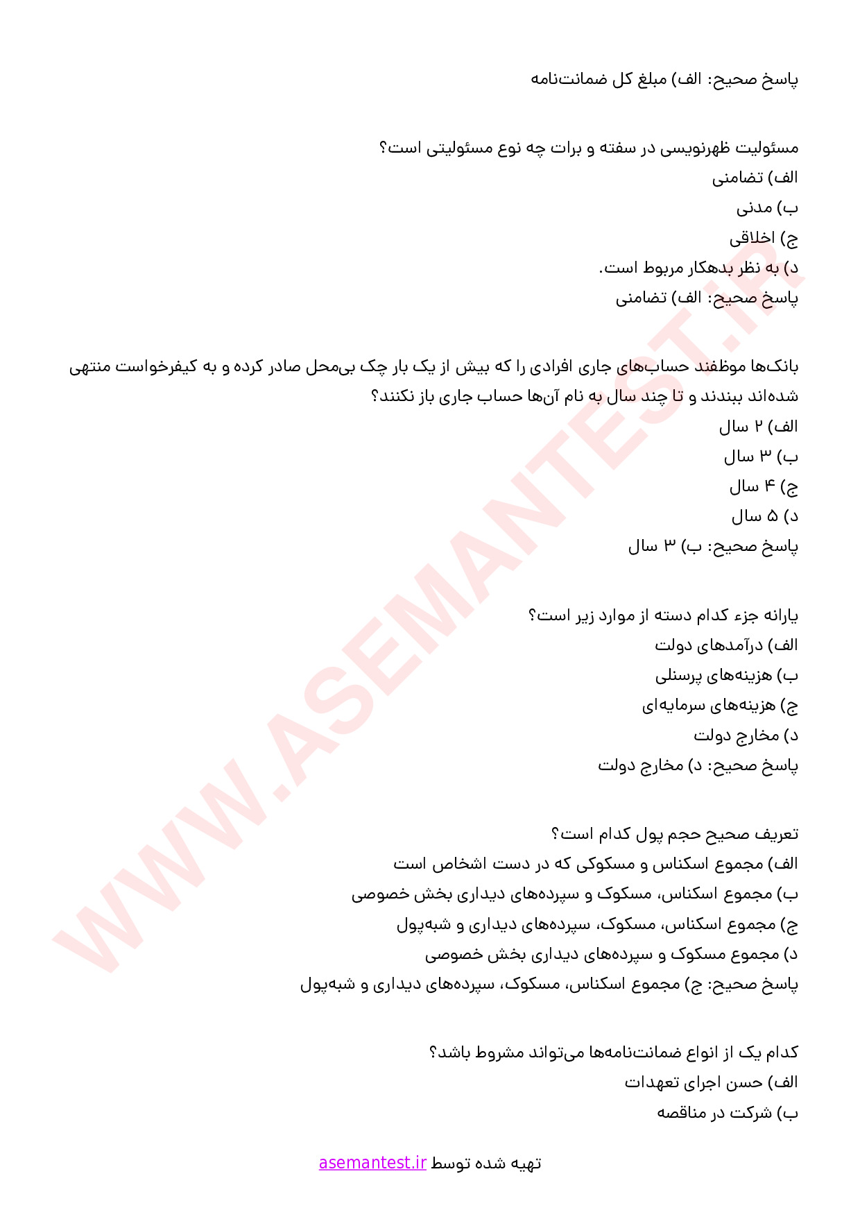 - نمونه سوالات تخصصی و عمومی آزمونهای استخدامی بانک سینا سالهای گذشته